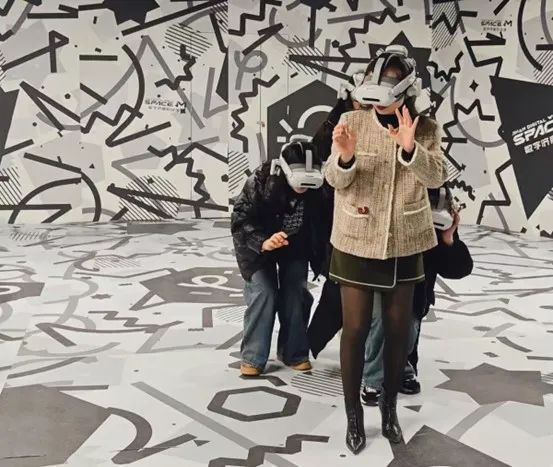 随后来到AI与元宇宙互动区,戴上VR设备,穿越虚实边界,感受元宇宙中的“她世界”。